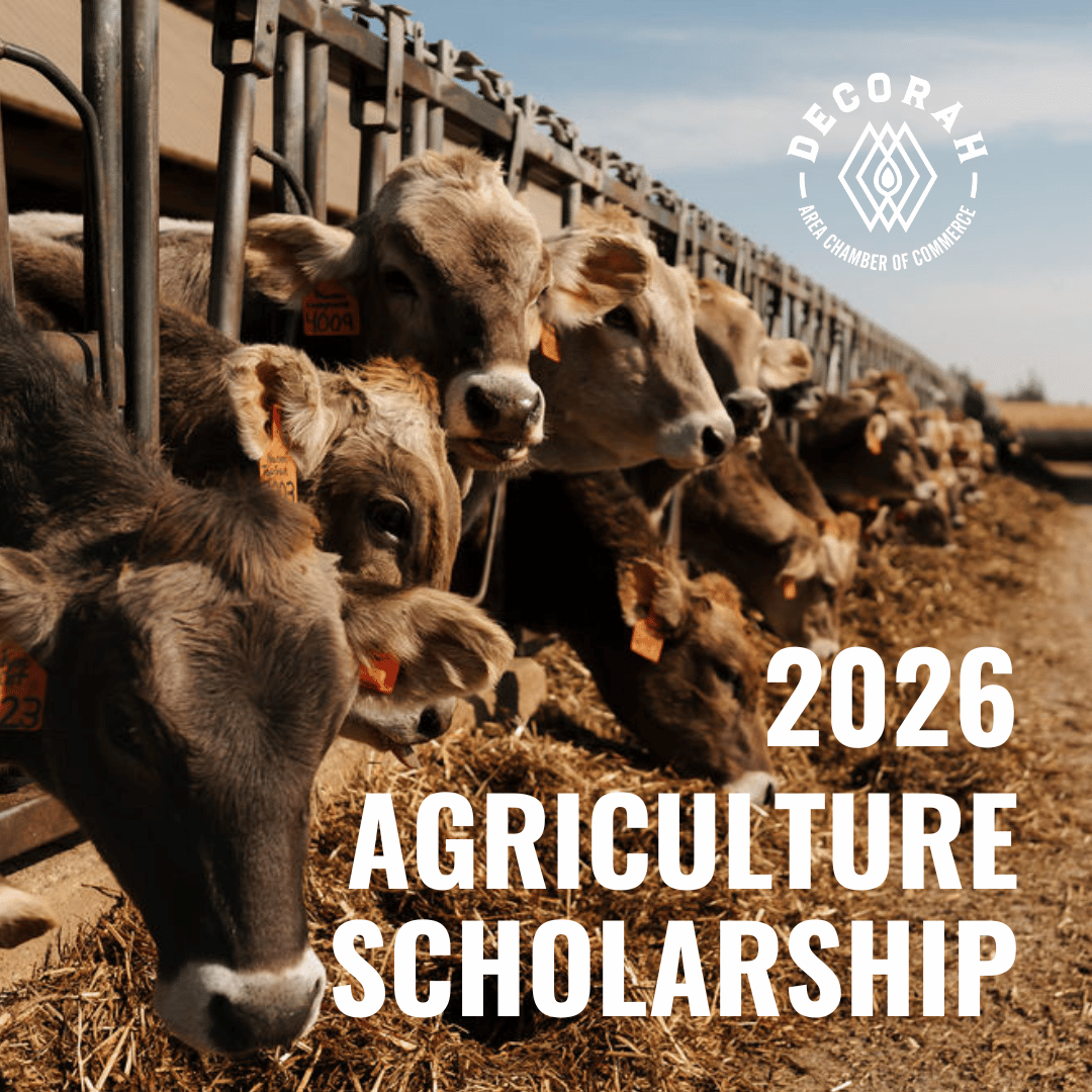 The Decorah Area Chamber of Commerce (DACC) Ag Committee is pleased to offer two $500 scholarships each year – one to a Winneshiek County graduating high school senior and one to a first-year student at NICC.